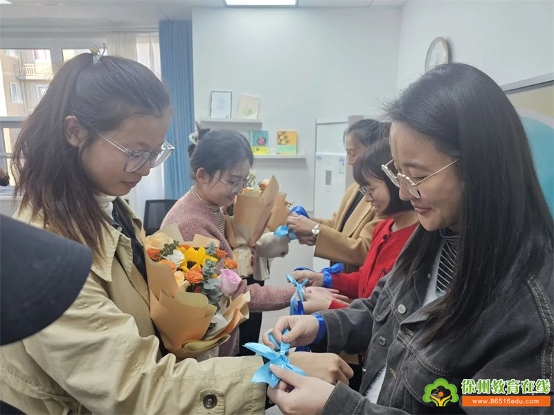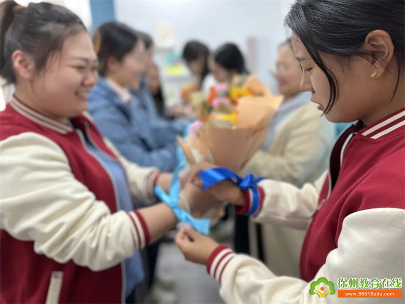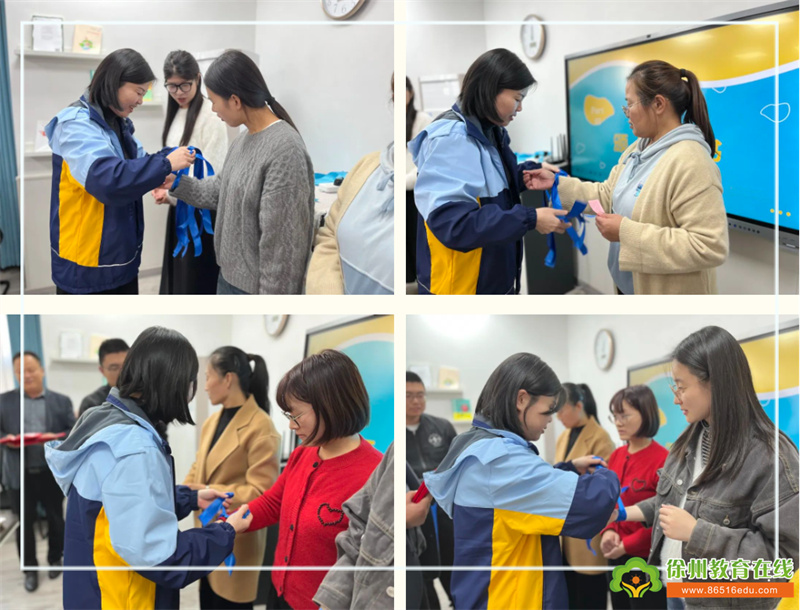 一缕丝带,两种美好。孙老师为师傅们系上蓝丝带,师傅们为徒弟们系上青丝带,青色承载了无限的期许,蓝色代表了由衷的祝福。当期许与祝福相互交织,终会在教育的道路上破茧成蝶,共同去见证教育美好的未来。