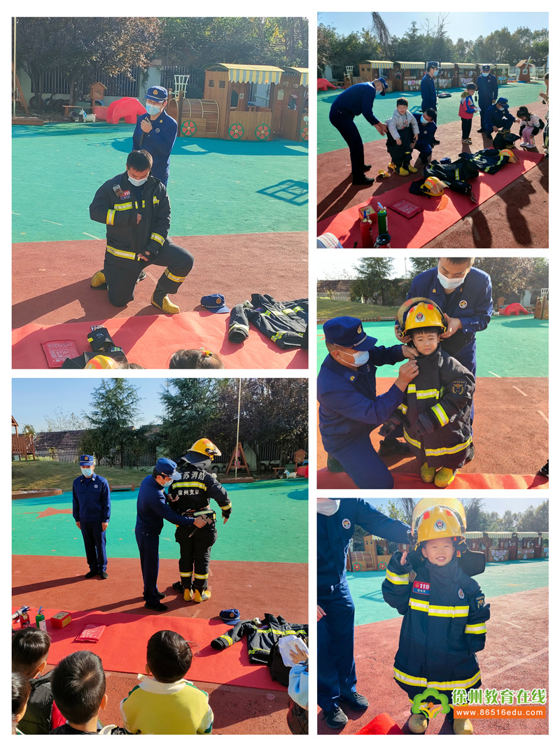 演练结束后,消防员叔叔对本次消防演练活动进行总结,并给孩子们进行了消防安全知识的讲解,与孩子们进行消防知识互动,做到安全知识我谨记,使孩子们更加深刻地了解消防安全知识和掌握自救逃生的技巧。消防员叔叔还为小朋友详细地介绍了一些消防设备、作用及其使用方法,现场操作示范,引起小朋友的阵阵掌声。最后,小朋友们穿上消防员灭火战斗服,瞬间一个个变身“小小消防战士”,体验当了消防员的神圣感。