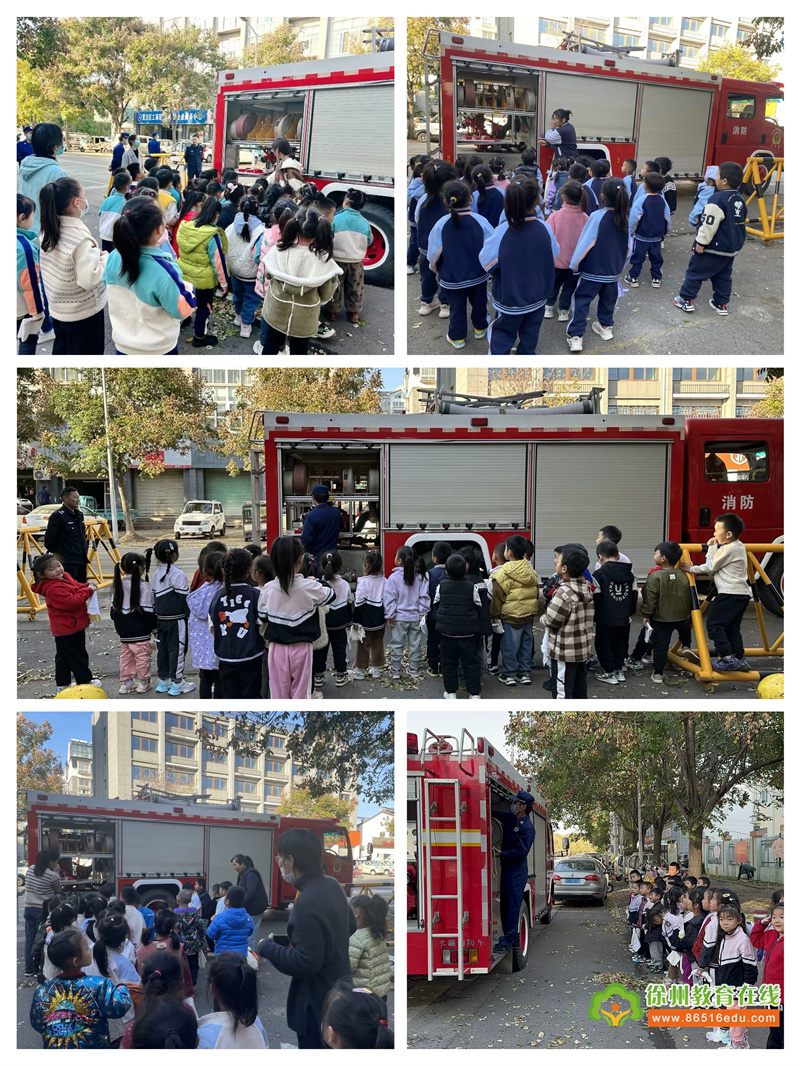 当孩子们们看到消防车的瞬间,再也抵挡不住内心的激动,在老师的带领下,消防车来了一次零距离接触。