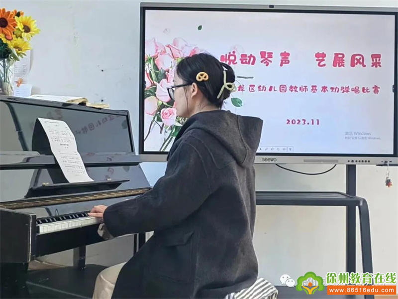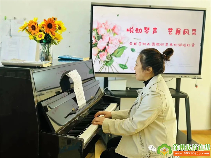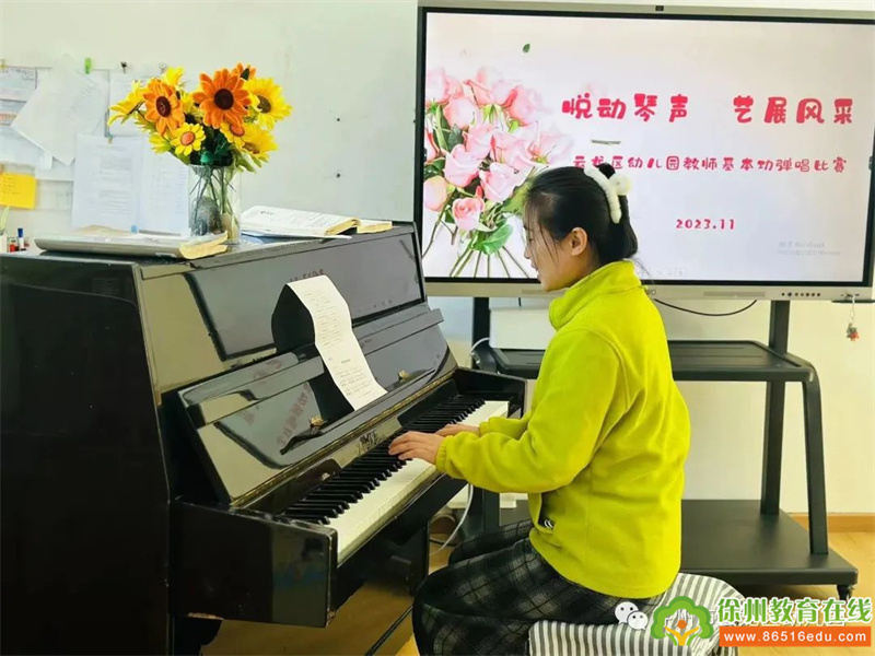为进一步贯彻落实《指南》精神,提高幼儿教师专业技能水平,促进教师专业成长,提升幼儿教师的综合素质。2023年11月6日,云龙区幼儿园开展了“悦动琴声 艺展风采”教师基本功弹唱比赛。