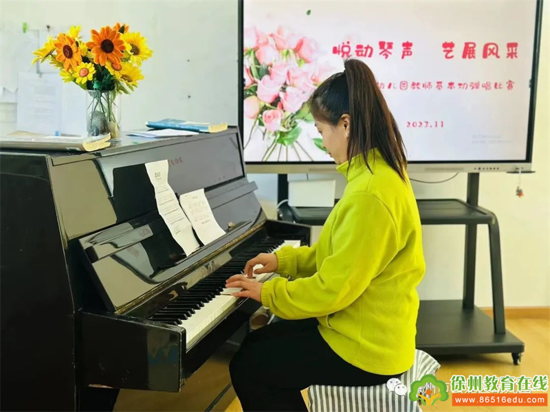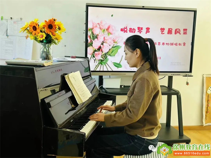 幼儿园音乐教育是艺术教育的重要组成部分,钢琴弹唱是幼儿教师必备的教学基本功之一,本次比赛全园青年教师参赛。