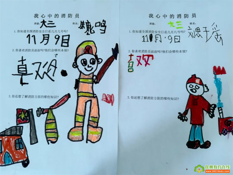 中国的消防安全日为11月9日,为了让孩子们体验真正的消防作战部队,感受消防战士严格的作战纪律,萌发勇敢、坚持、不怕困难等优秀品质。沈实幼大班年级组充分挖掘幼儿园教育资源,于2023年11月7日上午开展了“童”行消防队,致敬火焰蓝”活动。孩子们对“消防员”展开了调查。