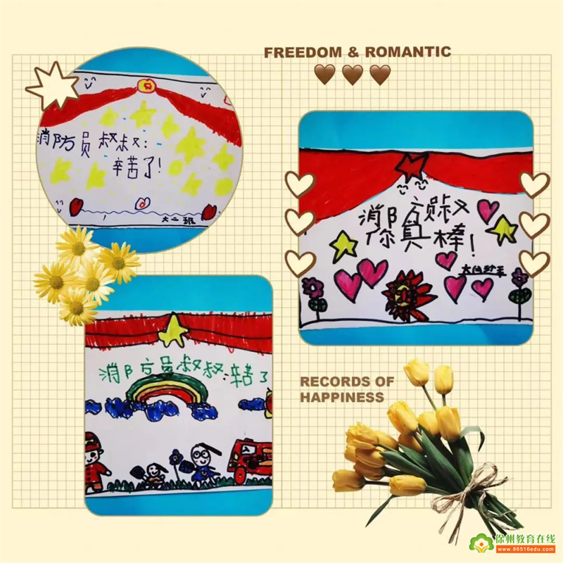 参观活动的最后,孩子们与最爱的消防员叔叔合影留念,还为他们送上了早早就制作好的小礼物,希望我们的消防员叔叔每一次出警都平安归来!