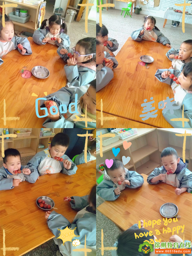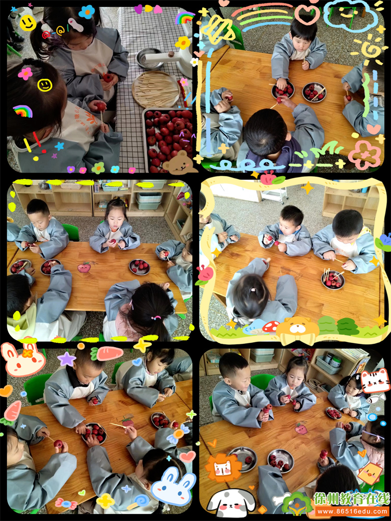 “好甜啊!”“真好吃。”“老师你尝尝!”“这是我做的糖葫芦!”宝贝们分享着自己的喜悦,嘴巴里咯嘣咯嘣的声音,弥漫着甜甜的味道。