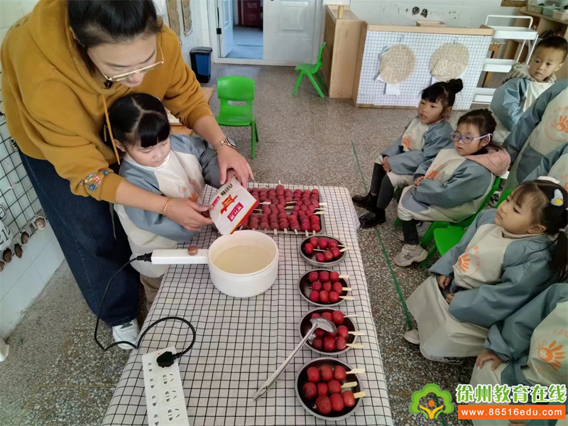 在老师的帮助下一串串晶莹剔透的糖葫芦出锅啦!