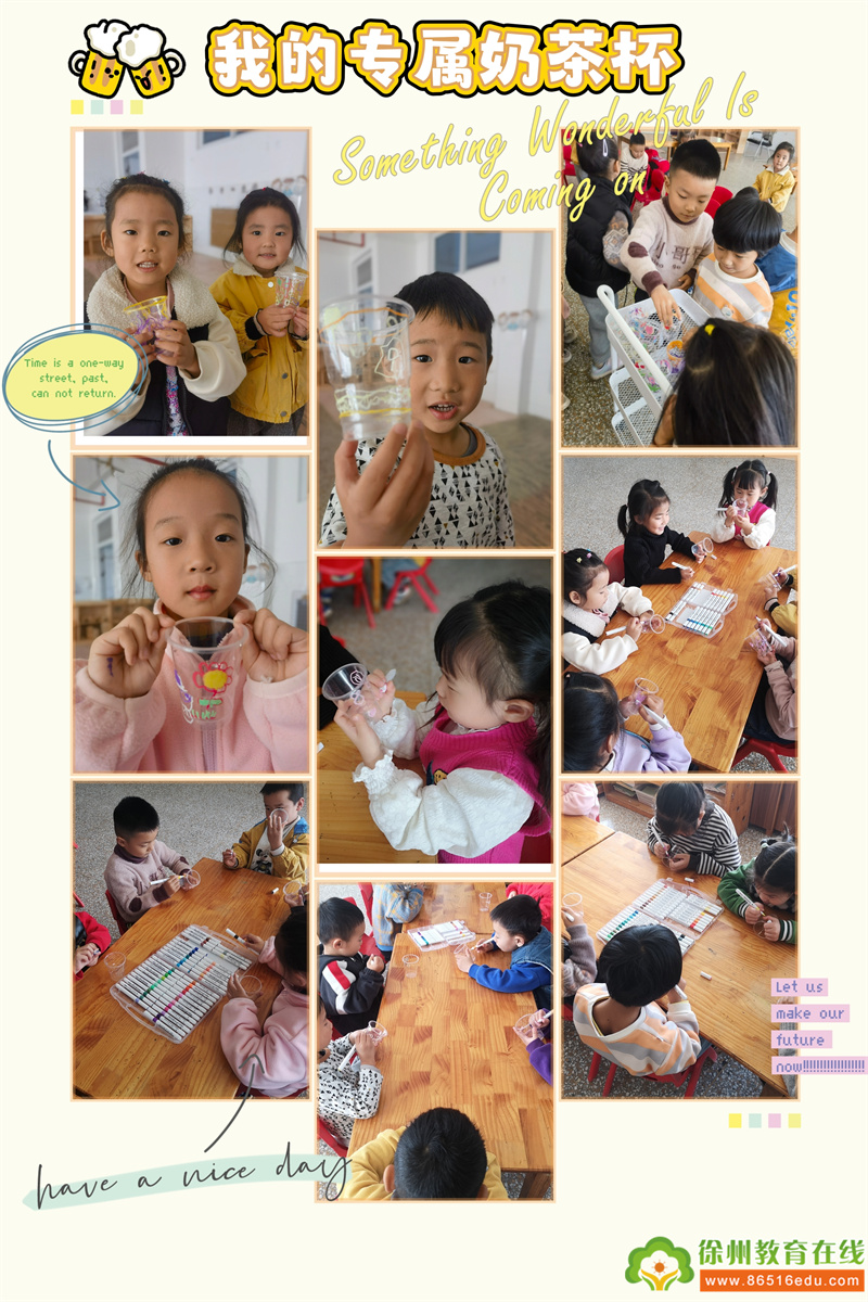 首先,孩子们用自己的画笔制作了自己的专属奶茶杯,透明的杯子上被孩子们装饰的很独特。