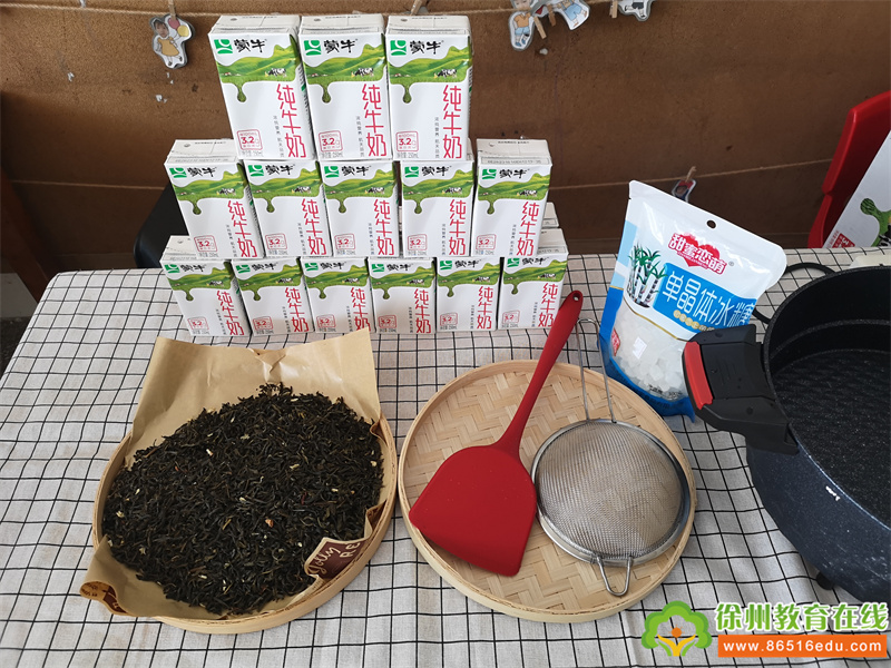 接着,老师向孩子们介绍了制作奶茶的材料和步骤,孩子们了解到制作奶茶需要牛奶、白糖、茶叶等原材料。孩子们还了解了茶叶的味道和形状。
