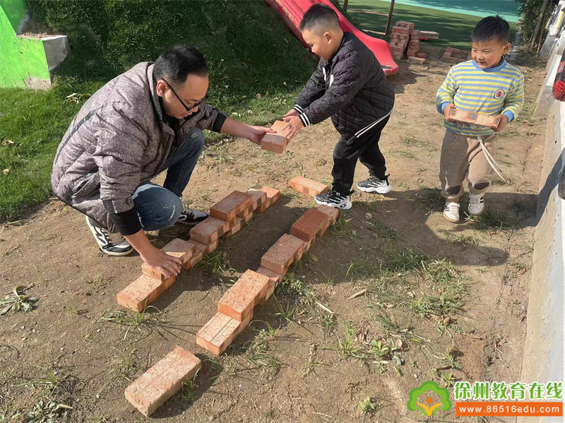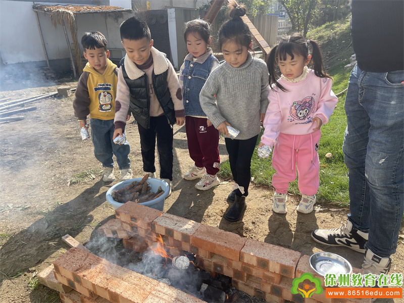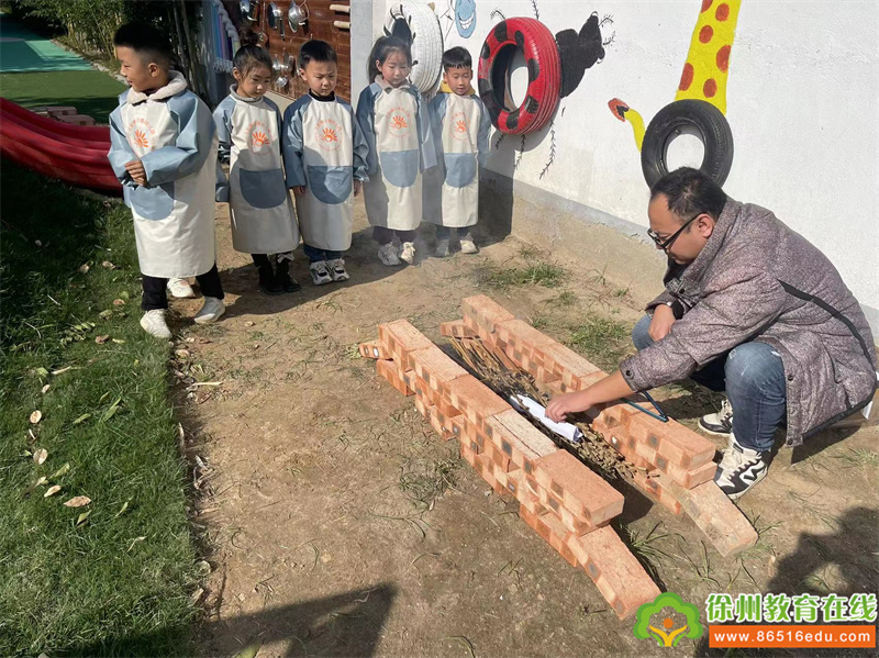 烤红薯和板栗需要在哪里烤呢?你看,老师和孩子们正在用砖头垒烤炉呢!
