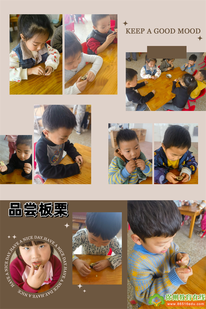 糖炒板栗起源于宋代,是冬天里最为传统的小吃之一。在这立冬的日子,大一班的孩子们在户外厨房进行了香喷喷的烤红薯和烤板栗。