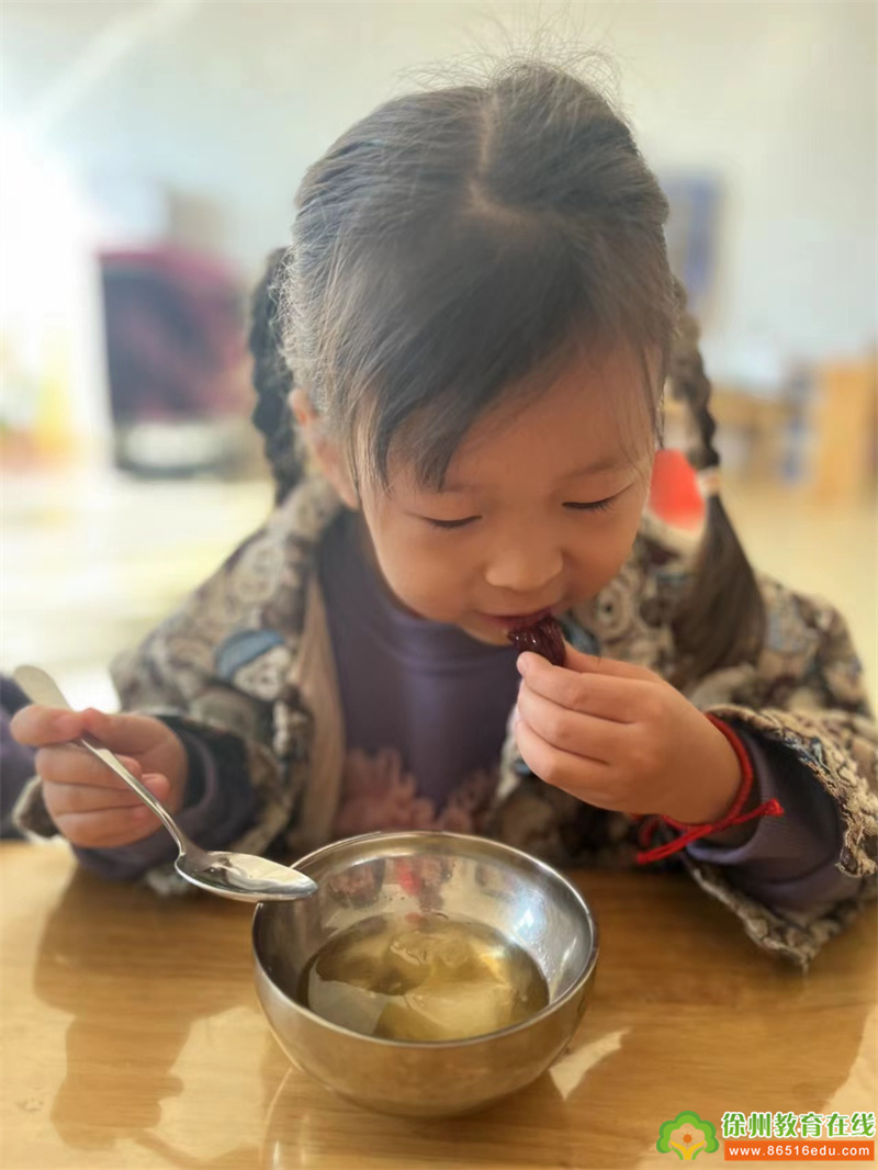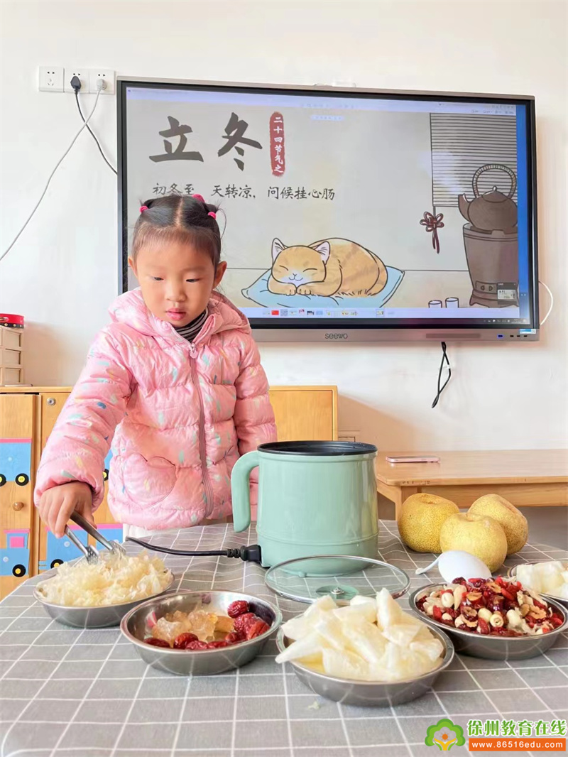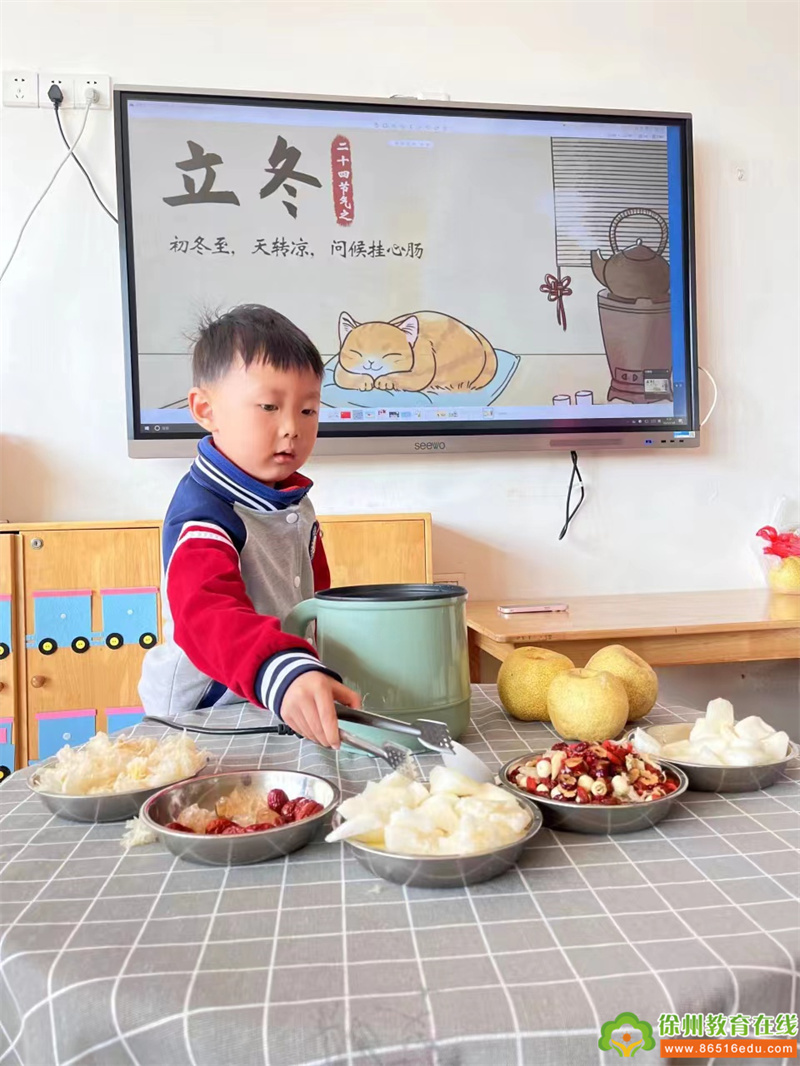 立冬节气一到,就代表着寒冷的冬天要来了,冬天来了,捧一碗热气腾腾的冰糖雪梨多么温暖啊,中一班的老师带着孩子们用银耳、红枣、雪梨、冰糖制作冬天的美食《银耳雪梨羹》,孩子们捧在手里,暖在心里!