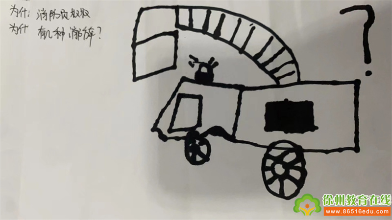 “消防车上的东西可真多啊”“这些工具好重呀!”“原来消防员的衣服种类分好几种!”直观近距离的接触感受,激发了孩子们探究消防车的兴趣。
