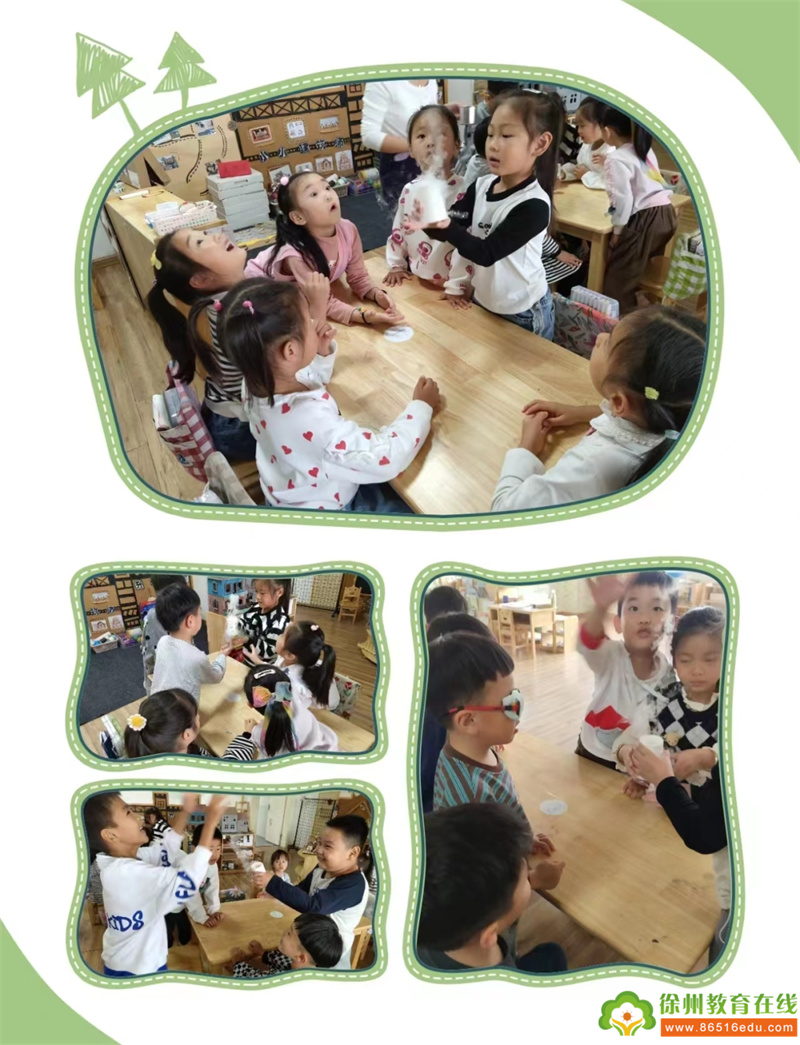 小朋友们都迫不及待地想要尝试一番,教室里不时爆发出孩子们“哇!哇!”的尖叫声......