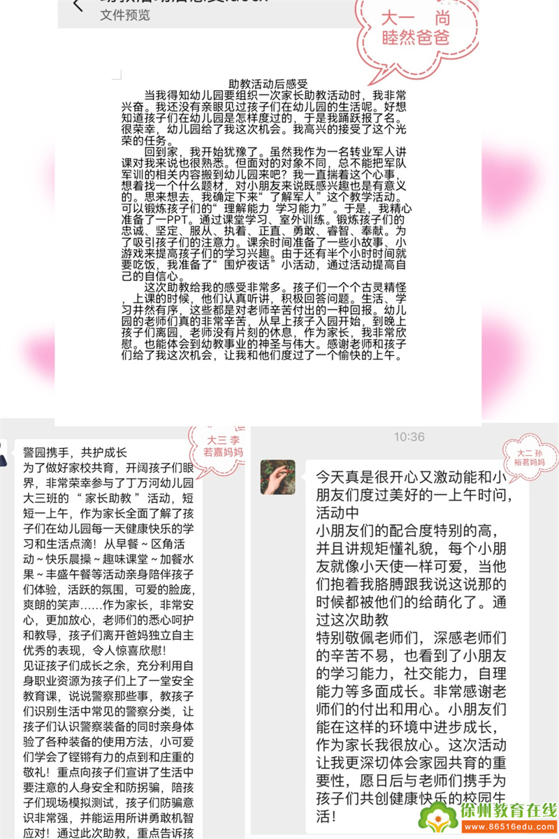 助教家长活动结束后,纷纷表达自己的收获与感受:幼儿园的活动很丰富、孩子们很活泼、做好助教不容易、老师们真辛苦、这样的助教活动特别有意义。家长们对活动表示高度认可,同时表达了对老师们的真诚感谢。