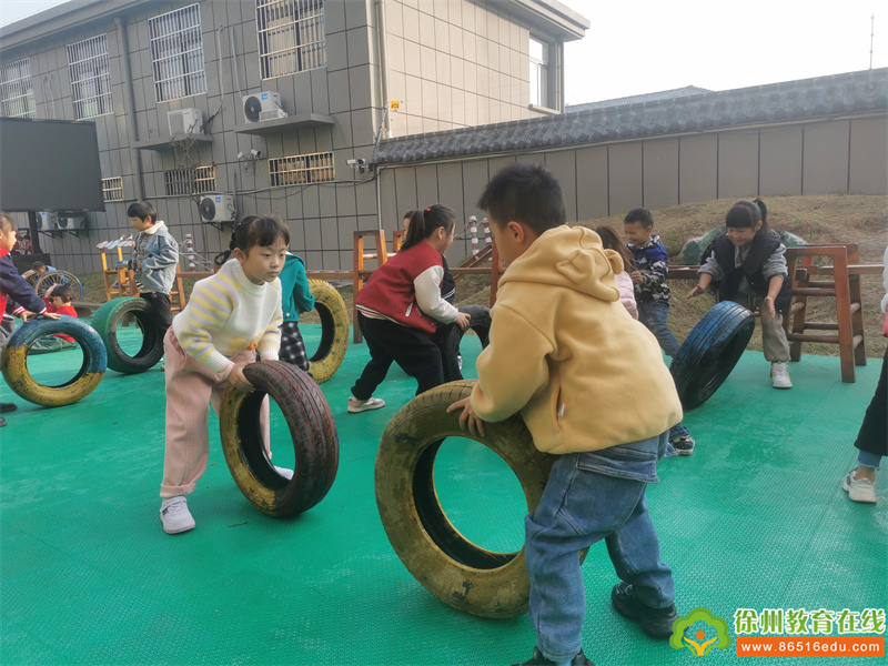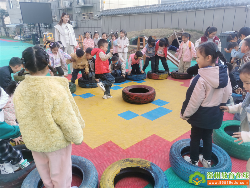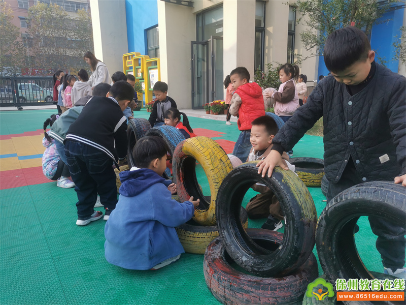 幼儿双手扶着轮胎,往前推。控制手的力度和前进的方向、速度,提高了手脚的协调合作能力。幼儿们一起合作,建立起良好的合作意识,发展了自己的钻爬能力。将轮胎一个个放在地上,找到各自的好朋友手拉手,相互扶持着走过轮胎小路!锻炼幼儿的平衡能力。幼儿们在轮胎滚动的同时,来挑战双脚跳过轮胎,提高动作的协调性。