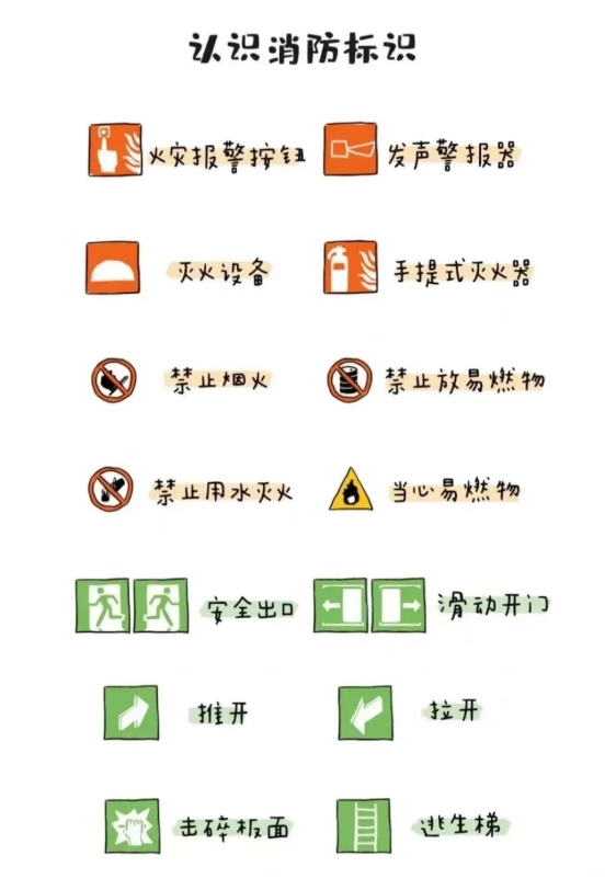 在消防演练之前,张静静园长召开消防安全应急疏散演练工作布置会,明确岗位职责,细化各楼层的疏散路线,强调演练过程前要熟悉逃生路线、演练过程中要保障幼儿的安全。各班教师根据幼儿的年龄特点,将安全教育渗透到幼儿园的一日生活中。教师带领幼儿认识了消防器材、逃生标志,了解灭火器的正确使用方法,学习火灾逃生的动作要领:用湿毛巾捂住口鼻,低伏前进,及时地逃离到安全地带。还知道在火灾发生后,要第一时间拨打电话“119”。在报警的时候要将自己的姓名、电话、发生火灾的详细地址讲清楚。牢记先撤离火灾场,不急于抢出物品,以免耽误时间,造成人员伤害。
