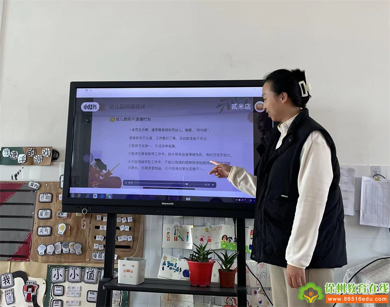 首先,郑露露老师带领全体教师认真学习关于《新时代幼儿园教师职业行为十项准则》的具体内容,以及《教师违反师德师风行为处罚办法》,老师们认真学习,详细记录;接着,结合视频案例,各班教师进行自我审视,交流个人感想,进一步规范自己言行举止,不做有损职业道德的行为。最后,郑老师明确强调了师德规范要求,要求教师在日常活动中用责任心、爱心、耐心和细心去对待幼儿,坚持保教并重,以游戏为主的幼儿一日活动,组织丰富多彩的区域活动,优化幼儿园的各项管理,努力提高办园水平。