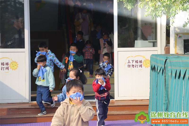 随着急促的警报声响起,消防疏散演练正式开始了。在老师们的引导下,孩子们迅速按照预案的疏散线路,用毛巾捂住口鼻,弯腰小步快走,从教室有秩序、不慌乱地沿着指定路线撤离到安全地带。