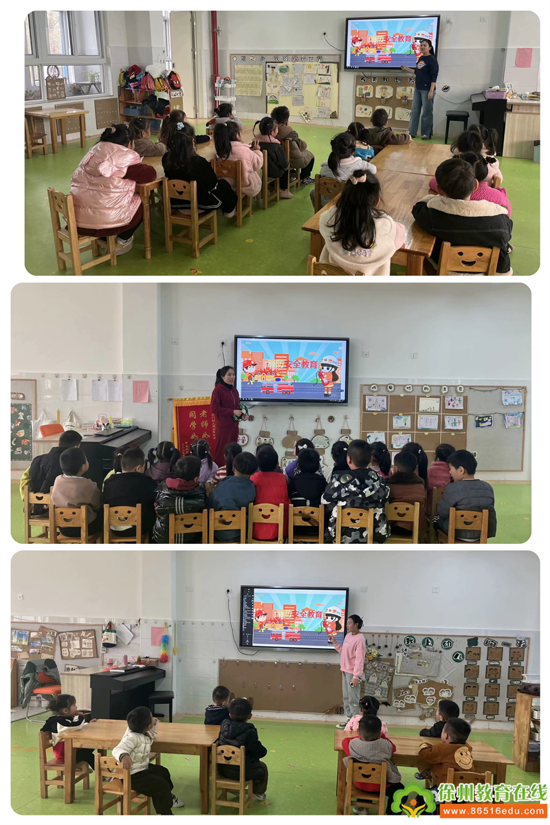 演练前,教师通过PPT、图片、故事、视频、情景模拟等方式给孩子们进行了消防安全演练教育,帮助幼儿提高自我保护意识,掌握基本的逃生技能。