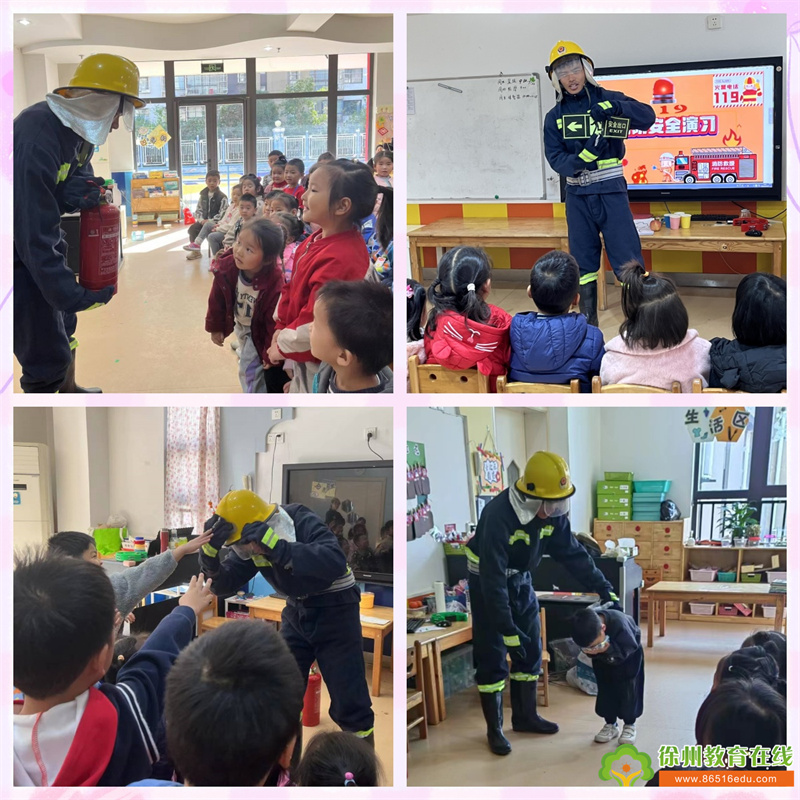 各班特邀消防老师通过视频、图片等教育形式,对幼儿进行消防安全知识教育,使孩子们提前了解消防员的防火衣物、基本的消防逃生技巧和灭火器的操作演示。并强调了可能遇到的危险以及需要注意的安全事项。