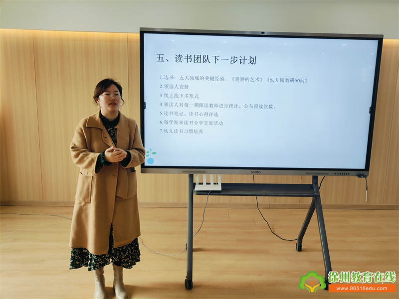 业务园长马维从选书、领读人安排、读书形式、领读人职责、读书笔记与读书心得评选、学期末读书分享交流活动、幼儿读书习惯培养等方面做了具体安排。