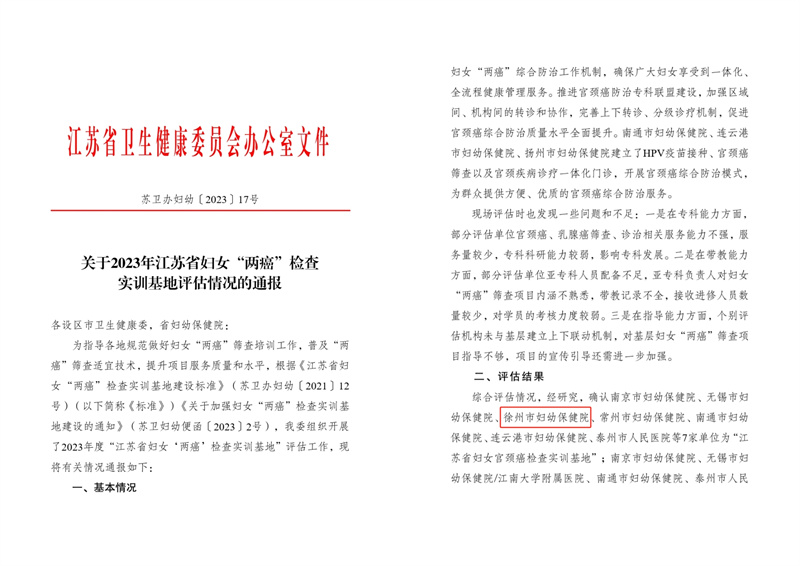 《关于2023年江苏省妇女“两癌”检查实训基地评估情况的通报》
