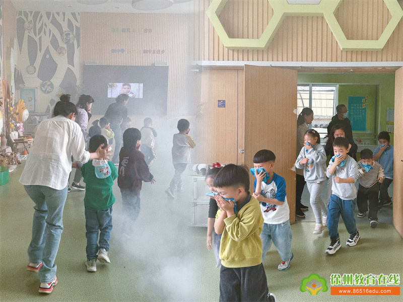 上午11点10分,随着消防警报声的骤然响起,全园幼儿在老师的带领下迅速用湿毛巾捂住口鼻,弯腰俯身,紧张而有序的按预定疏散路线,快速安全的撤离到操场上。同时,园内演练应急小组成员按照演练预案的要求各就各位,各司其责。全园师生从报警的哨声响起到疏散完成,共用了2分30秒的时间。演练真正做到了井然有序。方园长对演练做了总结,对演练中的细节问题提出了改进要求。