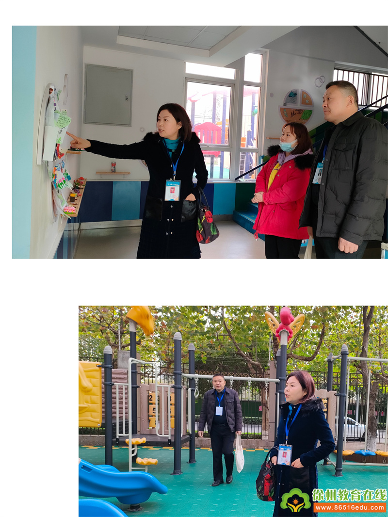 在郭园长的陪同下,两位督学对园所环境、设施设备安全等进行了实地查看。
