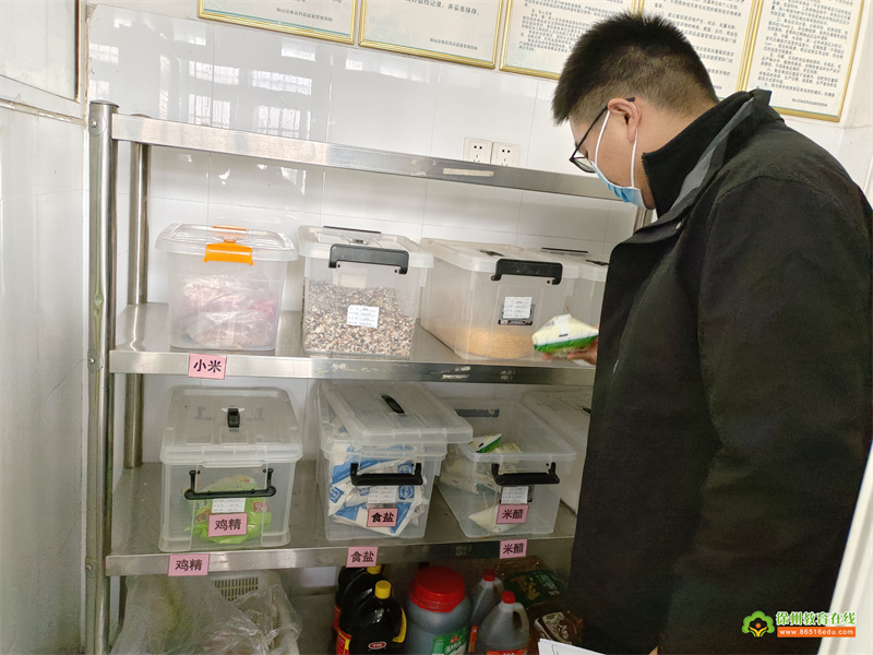 检查组在大许镇中心园赵园长、太山园姚园长的陪同下实地查看了太山幼儿园的食堂环境,对食品储藏室、粗加工、分餐间、烹饪区等区域进行了认真仔细的检查,从幼儿园食堂食品原料的采购索证、从业人员健康体检证、食材的生产日期与保质期等多方面进行检查。在检查过程中,检查组人员对幼儿园厨房食堂等各项工作环节方面给予了充分的肯定,同时在管理工作上也提出专业性的指导意见。
