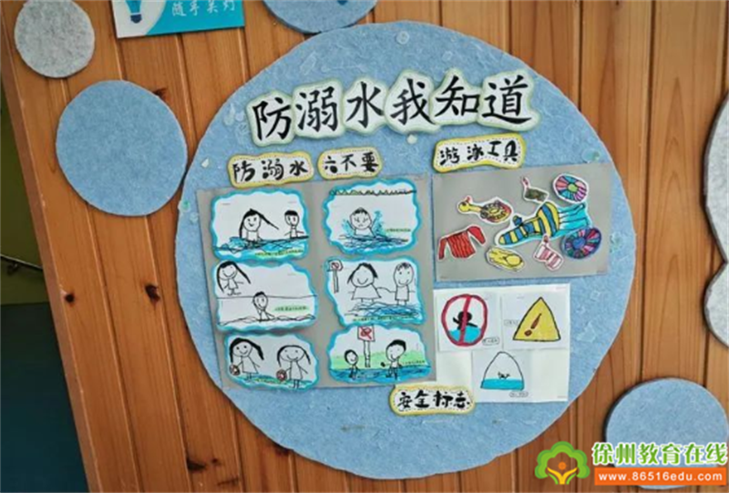 我们来看一看各年段的主题宣传栏吧!它们分别介绍了防溺水,六不要、游泳小工具、安全标识、救生工具等小知识哦。