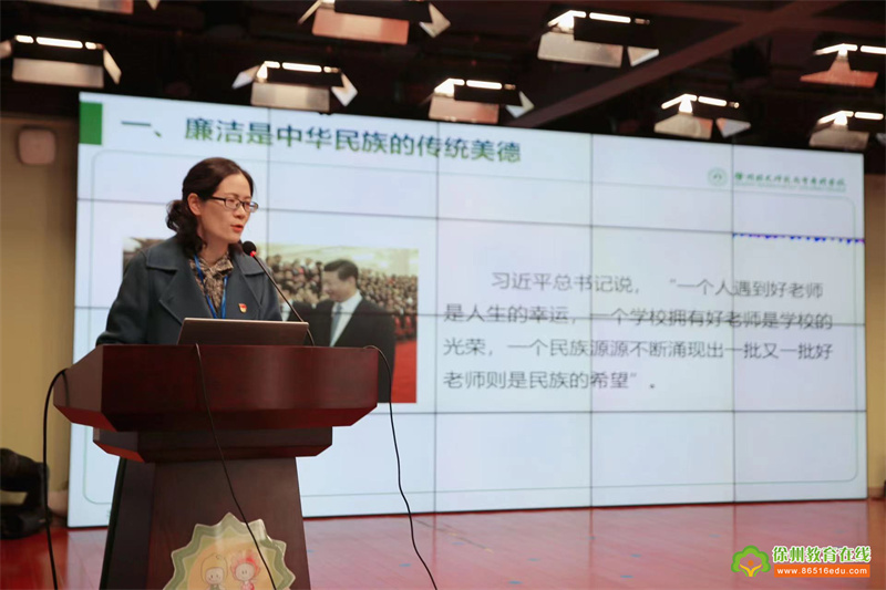 一实幼党支部书记方红娣以《廉洁从教 清风育人》为主题分享幼儿园在教师层面开展“清风徐来 廉韵润家”家风家教专题党课、党员签订“树清廉家风,创廉洁家庭”承诺书及师德师风承诺书,在幼儿层面组织“爱国月”,“知家训?守家风?传经典”等活动;学特院党总支书记李春秋讲授党课《扣好廉洁从教的“第一粒扣子”》,从廉洁是中华民族的传统美德、加强自身修养,做廉洁从教的模范等三个方面,阐述扣好了人生第一粒扣子,也就等于铺好了前进的基石的重要性,同时指出献身教育、为人师表、关爱学生的实践路径。