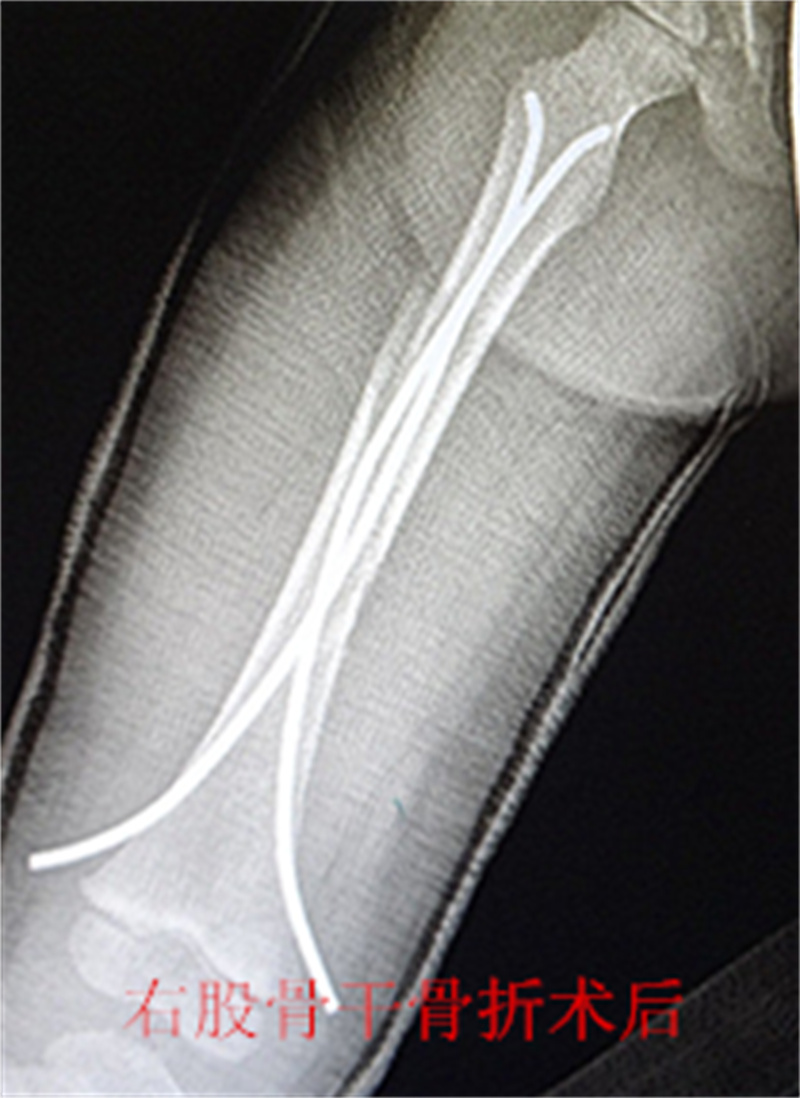 ,弹性髓内钉内固定解决了这个矛盾。有人说,弹性髓内钉的出现是上天对儿童的恩惠。的确,弹性髓内钉是治疗小儿长管状骨骨骨折的一种理想、可靠的内固定方法。弹性髓内钉技术发源于法国,在欧洲广泛应用后,现已为全球所接受,被称为是儿童骨科界的一次革命。徐州儿童医院骨一科应用弹性髓内钉技术治疗四肢长管状骨骨折,具有创伤小、恢复快、并发症相对少,孩子能较快恢复正常生活、学习等优点。该技术先将骨折闭合复位,通过微小的切口将特制的弹性髓内钉置入骨髓腔,达到固定骨折的目的。适用于肱骨,股骨,尺桡骨等部位的常见骨折(图)。