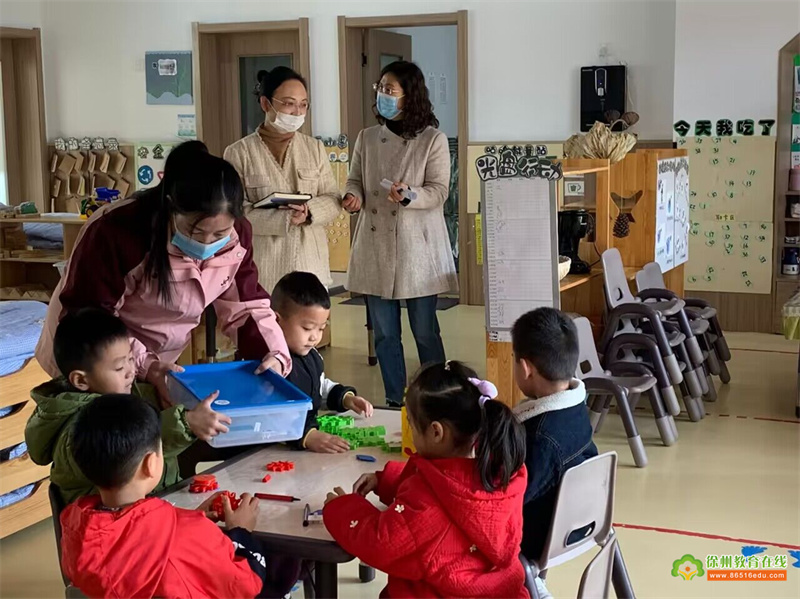 三位专家按照《徐州市课程质量评估》的指标,对幼儿园班级环境、户外环境、活动组织、师幼互动等四个方面的内容开展了细致的评估。在评估现场,分别通过实地察看、翻阅资料、深入教育现场等形式,对幼儿园办园质量进行全面深入的分析和评议。