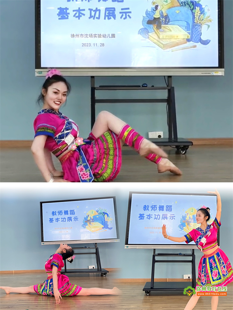 幼儿教师的专业化发展是幼儿园可持续发展的核心,而舞蹈则是每个幼儿教师必备的专业技能。依据《幼儿园教育指导纲要》和《3-6岁儿童学习与发展指南》精神,为加强师资队伍建设,提高我园教师技能水平,打造一支专业素质高、基本功扎实、具有高标准的幼师队伍,徐州市沈场实验幼儿园于2023年11月28日开展教师舞蹈基本功比赛活动。旨在通过此次活动,促进教师专业成长,提升我园教师的综合素质。