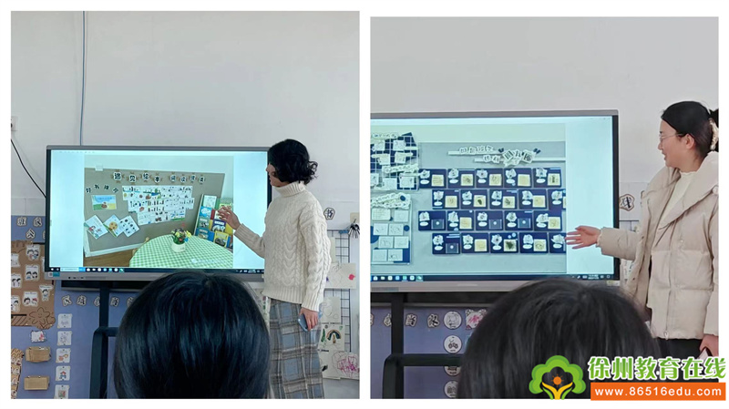 老师们以年级组交流研讨的方式,聚焦问题去讨论、分析。教师就如何多元的呈幼儿的表征及如何美化装饰等问题,进行了沉浸式的交流,并分享其所思所想与支持引导策略。