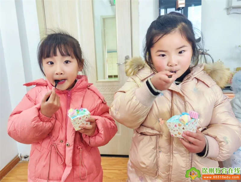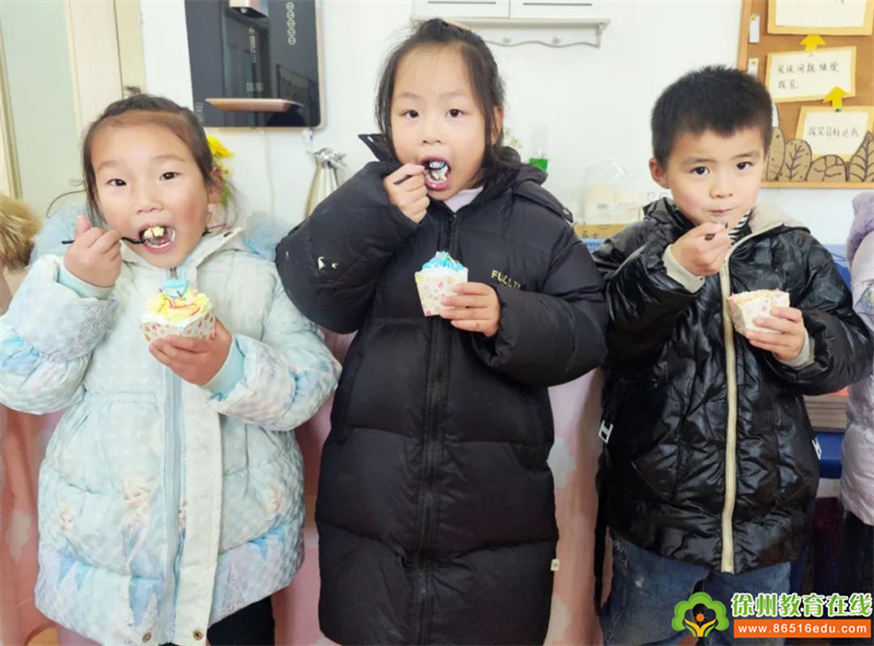 孩子们品尝着美味蛋糕,甜蜜从嘴巴流至心田。
