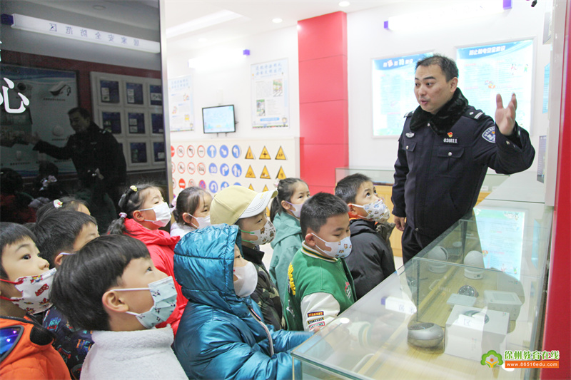 在期待中,黄菠萝班的宝贝们来到了青年路派出所社区警务室,李新龙所长做了充足的准备,热情的接待了黄菠萝班的宝贝们,孩子们参观了交通安全防范区、毒品预防教育区、消防安全体验区、预防诈骗区等,了解到了很多关于交通安全、防灾减灾、防盗防诈骗等相关知识,在与警察叔叔们的交谈中,孩子们充分表达了自己对于警察工作的敬仰与感谢。