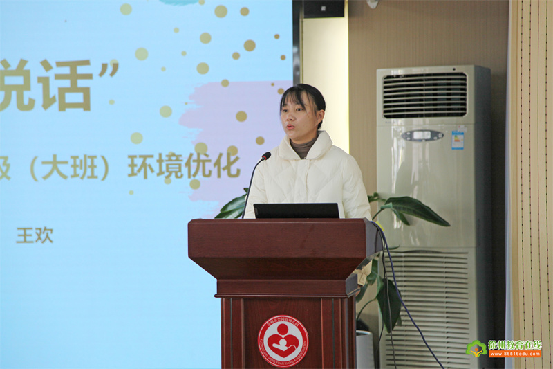 为了能够全面提升教师在环境创设方面的专业能力,为幼儿创设丰富、有效的活动环境,支持幼儿游戏,徐州市公园巷幼儿园于11月27日开展了以“让环境会说话”为主题的教研活动。此次教研活动由我园刚刚获得2023年江苏省优质教育活动评比一等奖的王欢教师以大班班级环境为例,从“以幼儿为主体、以问题为导向、以品质为目标”三个原则出发向大家分享在环境优化过程中的心得与反思。