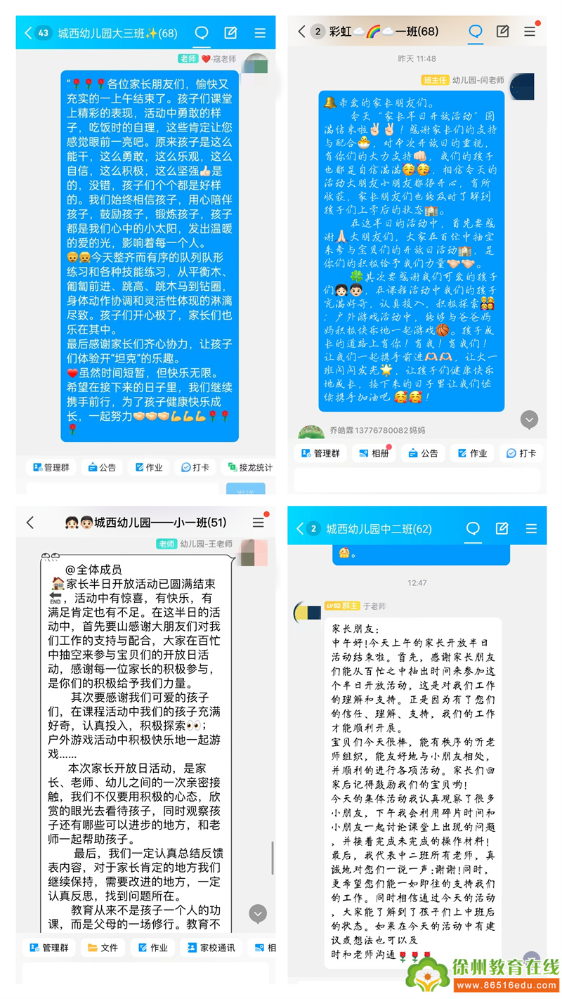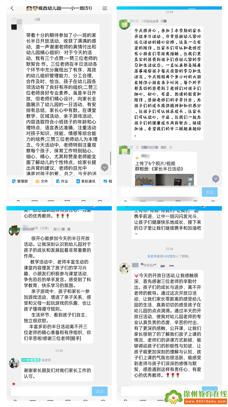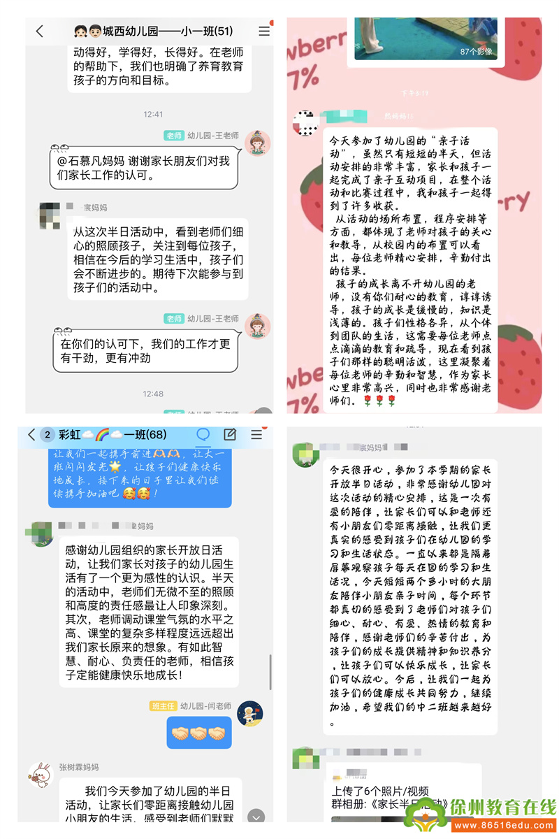 成长的惊喜、蜕变的感动是我们活动的收获。活动结束后,老师们及时进行活动总结,家长们也留下了自己真挚的感受。在每个细微的环节中,家长感受到老师的辛苦付出,对幼儿园的工作有了更新的认识,言语之间都流露出了对老师的肯定与感谢,以及对孩子成长的欢喜。家长每一次的反馈,都将转化为我们前行的力量。