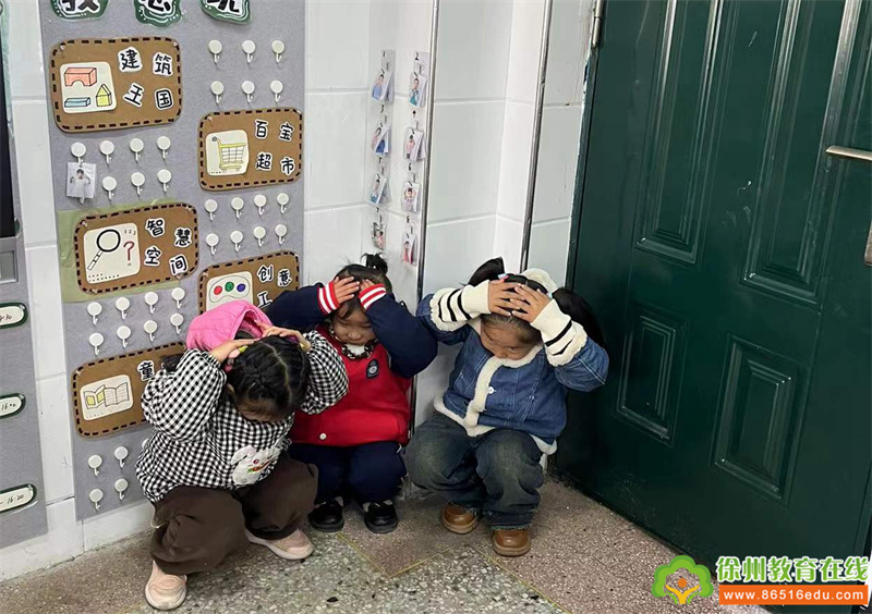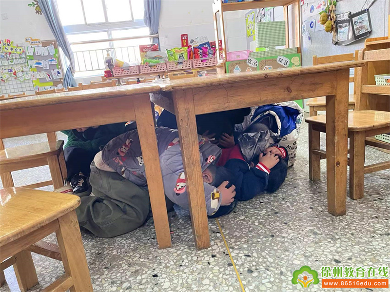 各班老师通过安全教育活动,以情景演习、播放视频、动作示范等途径,让幼儿了解地震这一自然灾害,学会简单的自救措施,熟悉、学习、练习应急避震和安全疏散的方法,提高安全防护意识。