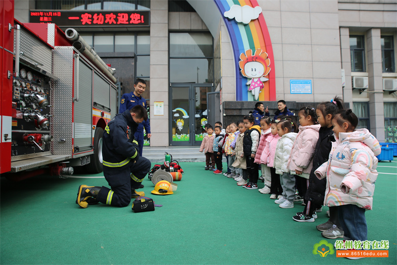 为了让幼儿更深入了解消防员的职责,增强幼儿的自我保护意识,提高幼儿的安全防范能力,一实幼中五班邀请到李芊烨爸爸,为孩子们带来一场别开生面的“消防车进校园”活动,让孩子与消防员叔叔、消防车有了一次零距离的接触。