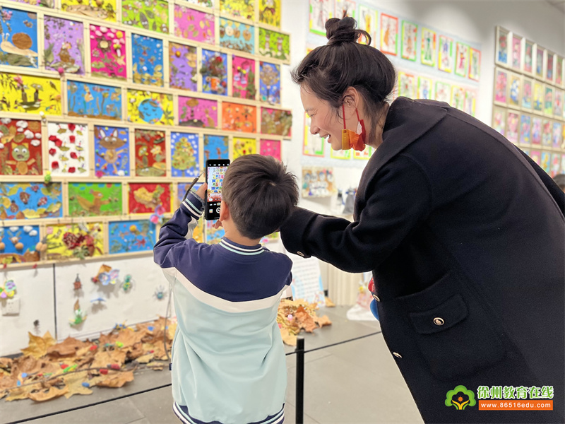 本次研学活动同时邀请了家长们一同参与,自由欣赏环节中,孩子在父母的陪伴下,带着好奇与探索,仔细观察着感兴趣的作品,开始了以自己独特的视角感触艺术,不停地与爸爸妈妈交流自己的发现,时不时的用手机记录心仪的美术作品,这也是一次特殊的亲子互动体验。