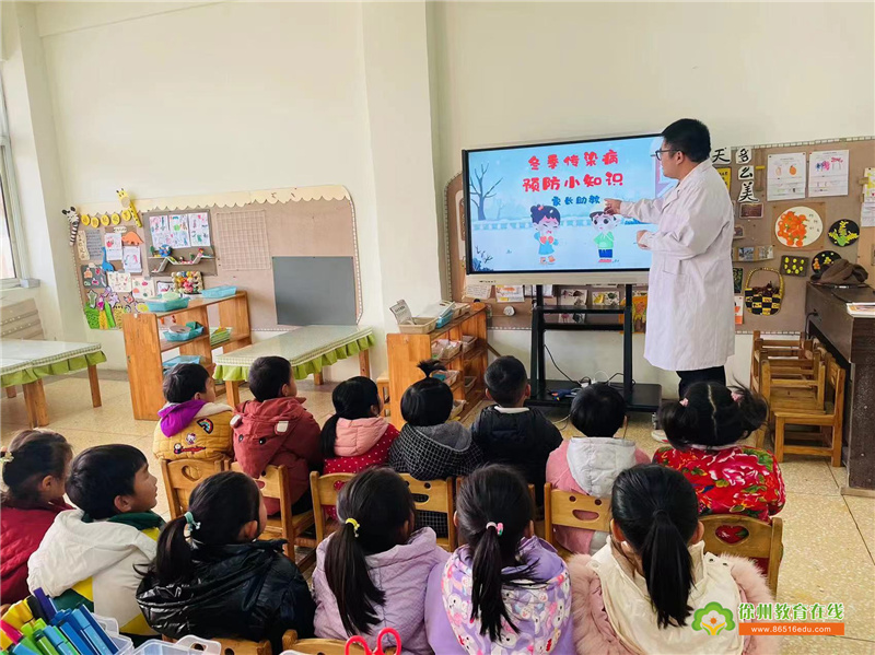 中班周佳柠爸爸是一名医生,他利用自己的专业知识,结合幼儿园孩子年龄特点,通过图片展示、情景表演等多种形式,让孩子们了解冬季传染病的预防小知识。
