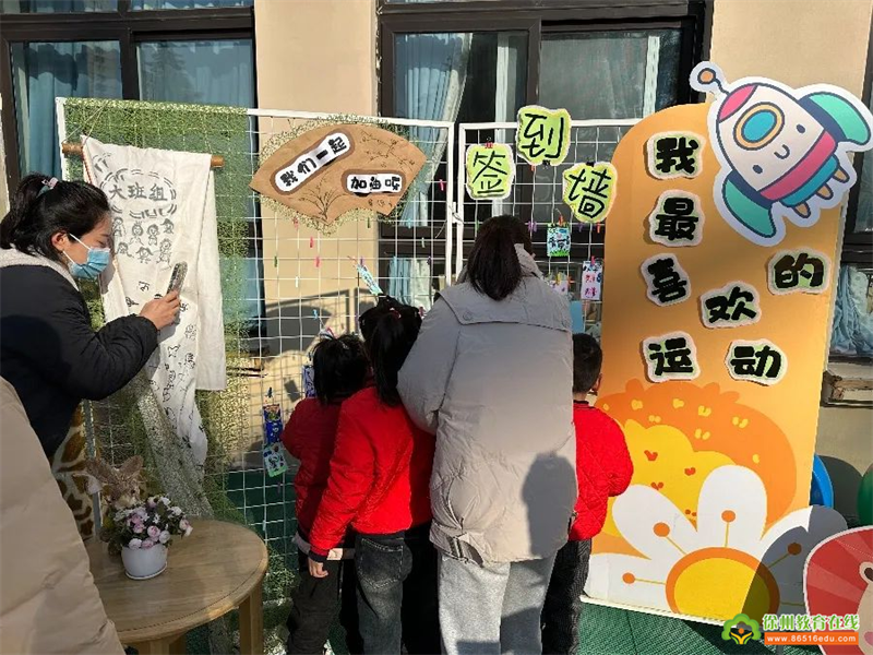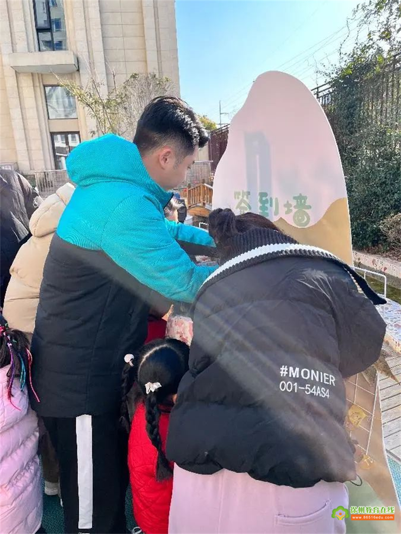 迎着冬日的暖阳,家长和孩子们一同进行活动前的签到~