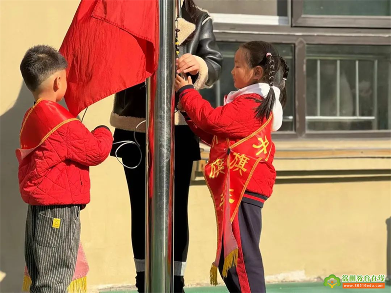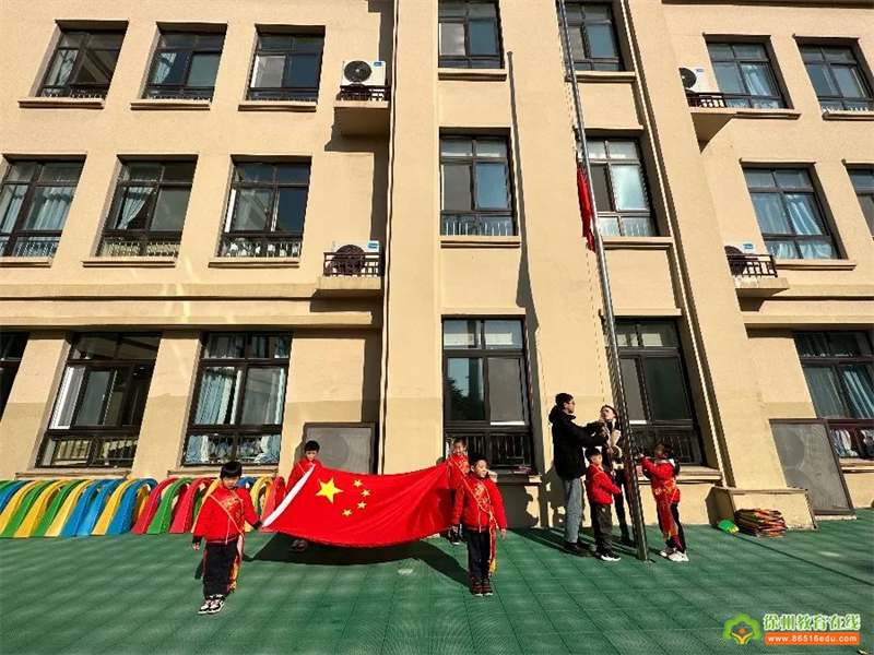 庄严肃穆的升旗仪式开始了!小小护旗手正高举着国旗步入会场。在庄严的国歌声中五星红旗冉冉升起,这一刻大家心中充满了自豪感~
