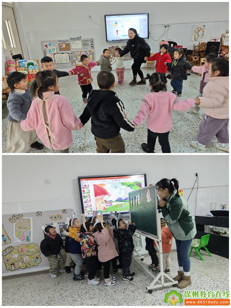 苗婷老师的《吹泡泡》活动以教师吹泡泡的导入形式,寓教于乐,在游戏中感受理解了歌曲的内容,体验到游戏的乐趣,李腾飞老师的《小兔子乖乖》通过大量的表演道具的支持,以角色扮演的形式帮助幼儿学习儿歌,让幼儿在享受音乐、理解音乐的过程中获得美的陶冶。