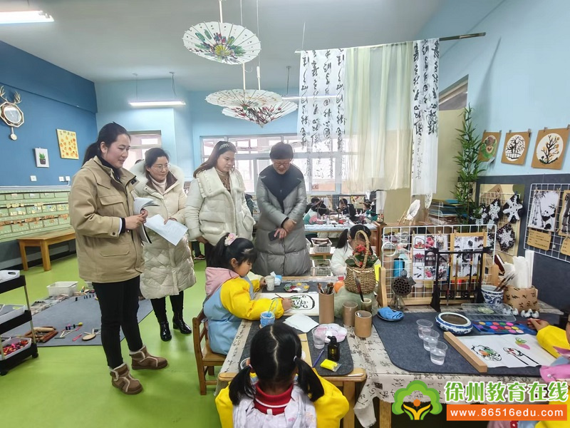 为了进一步贯彻落实《指南》精神,发挥优质教育资源,创设相互开放,优势互补,共同发展的教研环境。12月26日下午,新沂市学前办李玲主任、何楚清主任、新店镇学前二级共同体全体成员在新店镇小湖幼儿园,围绕“聚焦美工区域,共研共学共进”主题开展教研活动。意在帮助教师梳理美工区各年龄段幼儿发展的关键经验、解决教师在环境创设中的困惑。