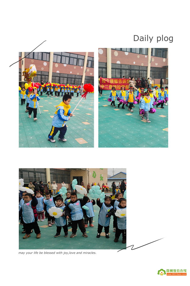 为了增进家园之间的交流,提高孩子的运动兴趣和运动技能,培养孩子良好的身体素质,进一步建立家园共育的基本理念,与孩子一起手拉手,回到孩童时代,感受他们的童真童趣,共同留住精彩瞬间,留下美好回忆。12月28日上午,大许镇太山幼儿园举行了“亲子同运动 快乐要翻倍”冬季亲子运动会。