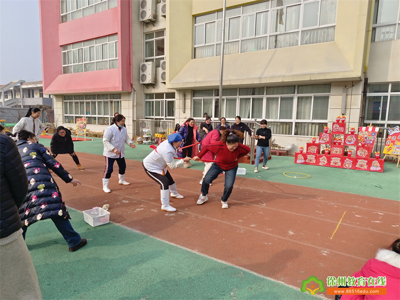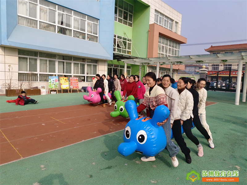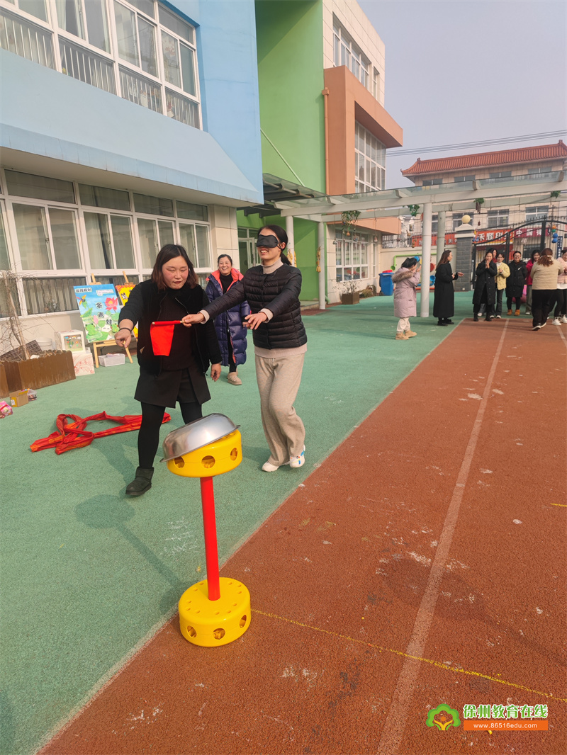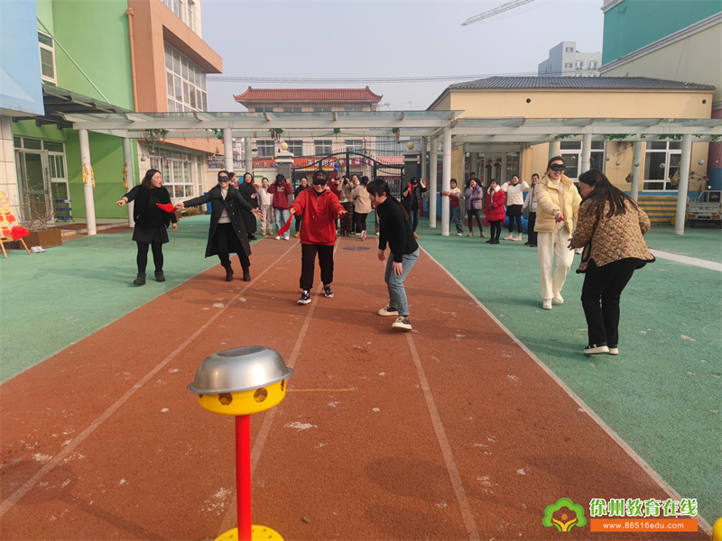 为进一步丰富教师的文化生活,释放活力,放松心灵,提高团队凝聚力,12月28日下午,大吴中心园举行了教工趣味运动会。本次运动会以“健康运动 乐享生活”为主题,设有多个趣味项目,包括“蒙眼敲盆”、“东西南北跑”、“趣味毛毛虫”、“跳绳”等。这些项目既具有趣味性,又需要团队协作和个人的技巧。