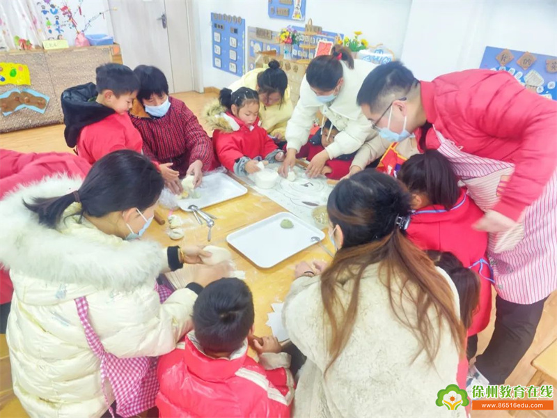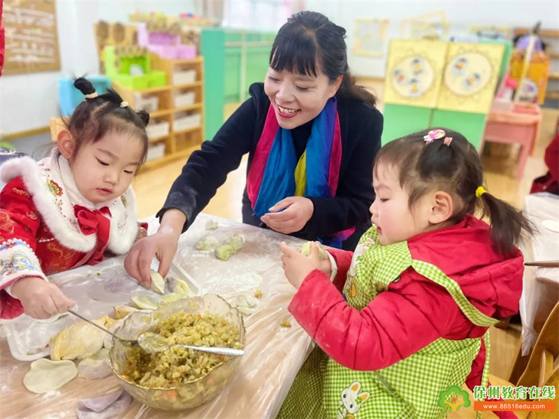 在家长们的陪伴指导下,孩子们小心翼翼的学着包饺子,现场的空气中弥漫着饺子的香味,幸福的笑容洋溢在每一个人的脸上,其乐融融。