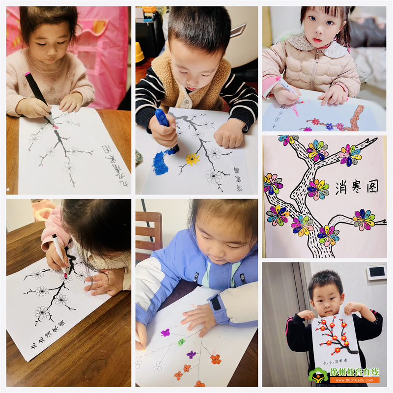 幼儿和家长一起体验绘画“九九消寒图”,冬至的到来,我们开始进入“九九”,用图画的方式记录“九九”的进程和变化的方法!